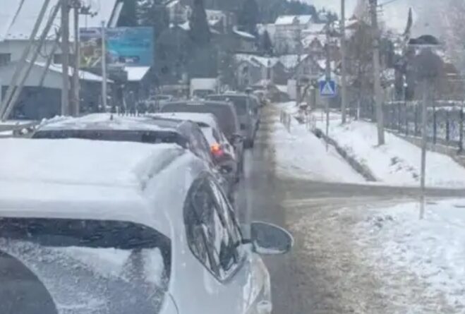 У селищі Делятин на Івано-Франківщині зафіксували серйозні затори на дорозі в напрямку Буковеля.